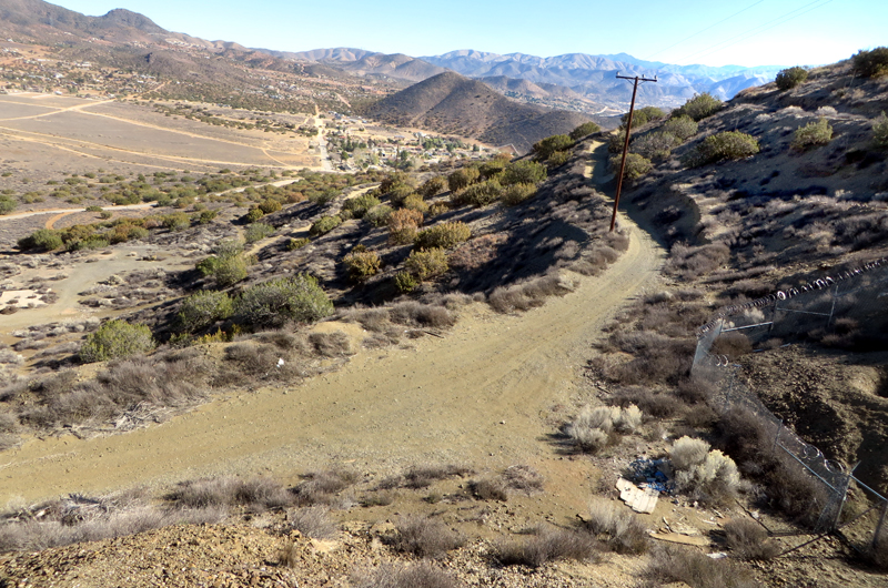 Governor Mine in Acton. Access road in front of the mine shaft, which has been filled in with dirt (just out of frame to the right). The view is to the east.