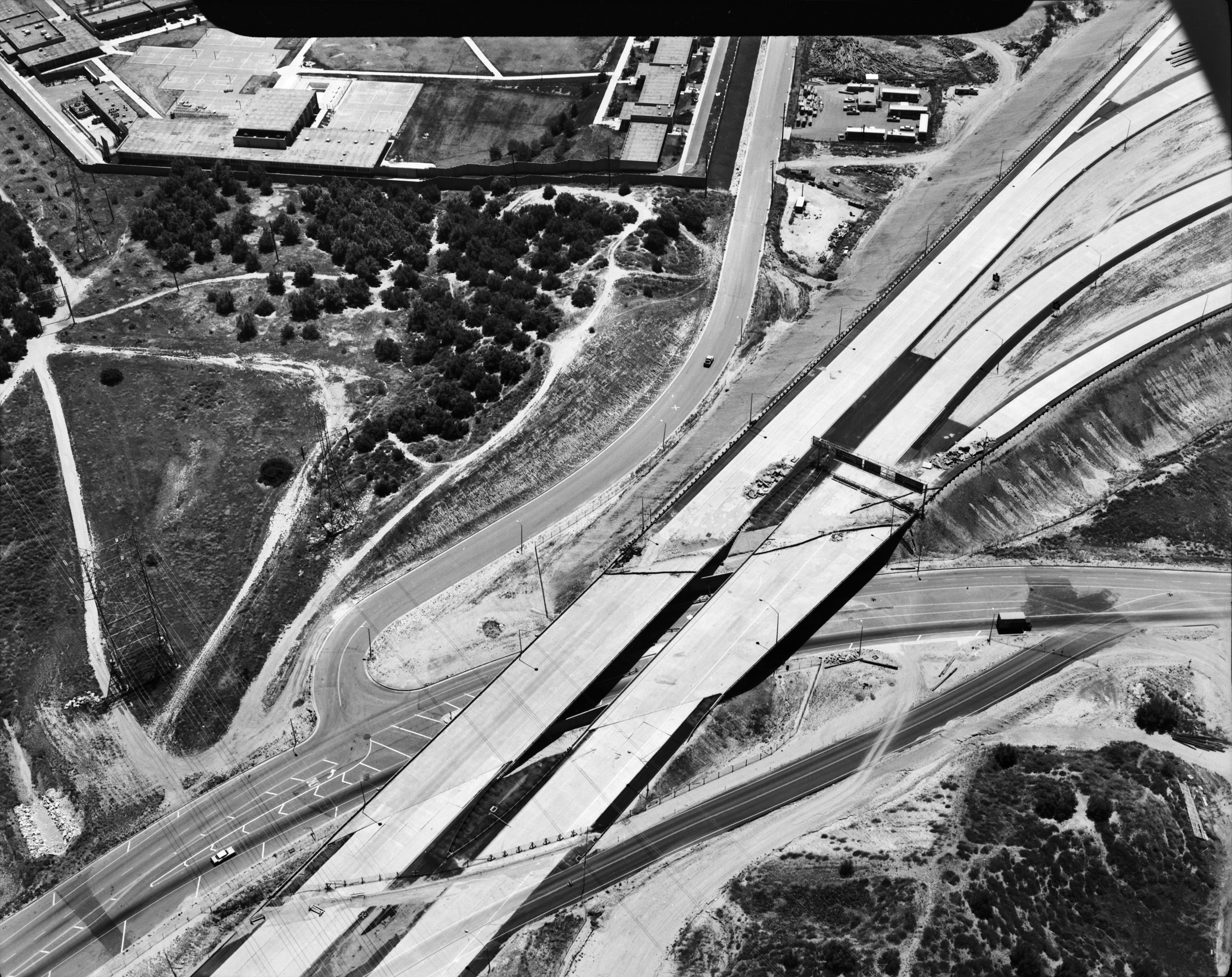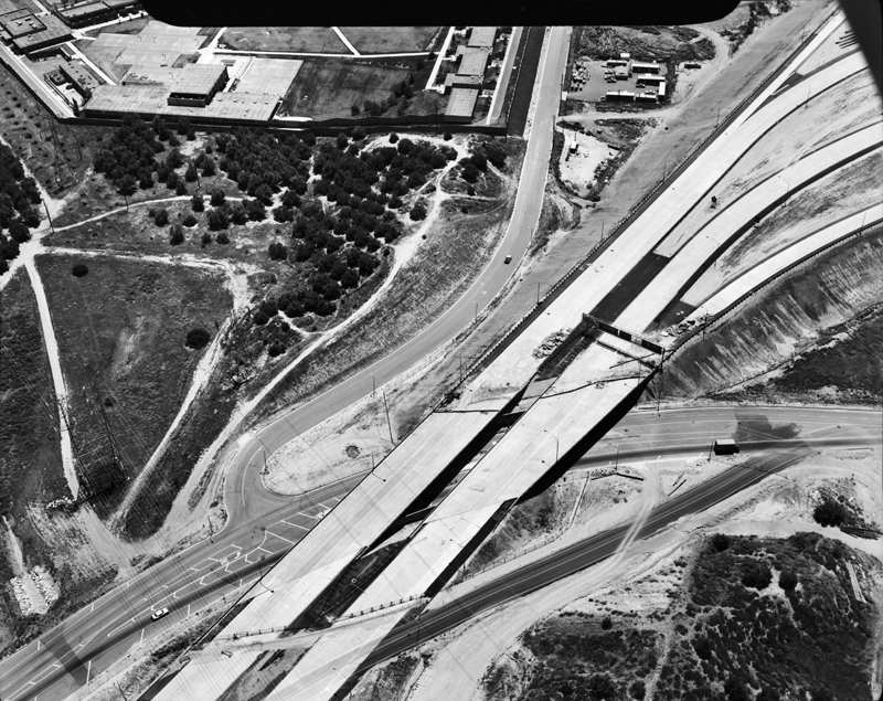 Westbound 210 Freeway just before it meets Interstate 5. Sylmar Juvenile Hall is at upper left.