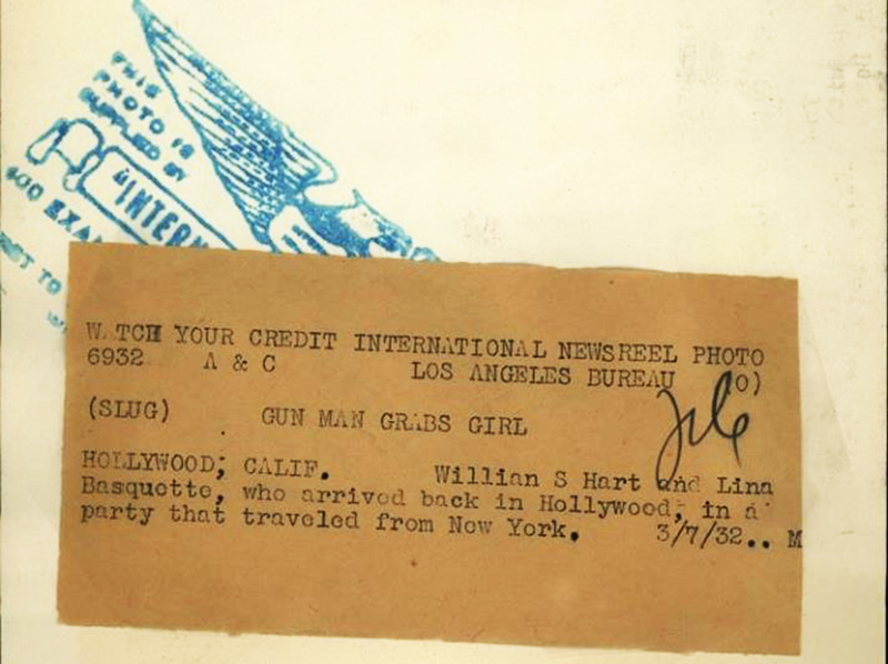 March 7, 1932 — Actors William S. Hart and Lina Basquette. International Newsreel wire photo, 5x8 inches.