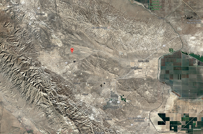 The Sebastian Reservation was located midway between Taft and McKittrick, in Crocker Canyon. Click to enlarge.