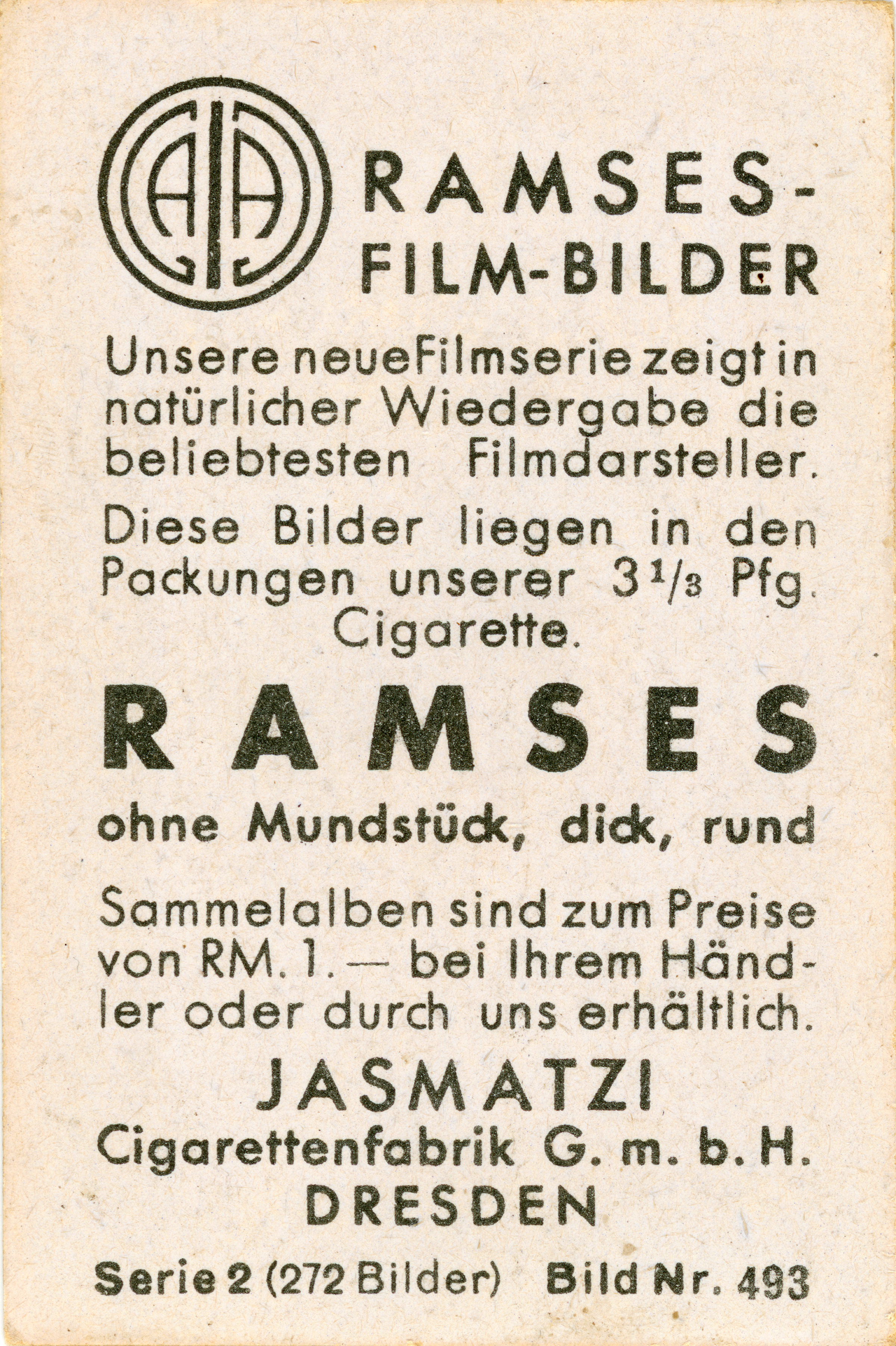 These pictures are inserted into packs of our 3⅓-pfennig cigarettes.