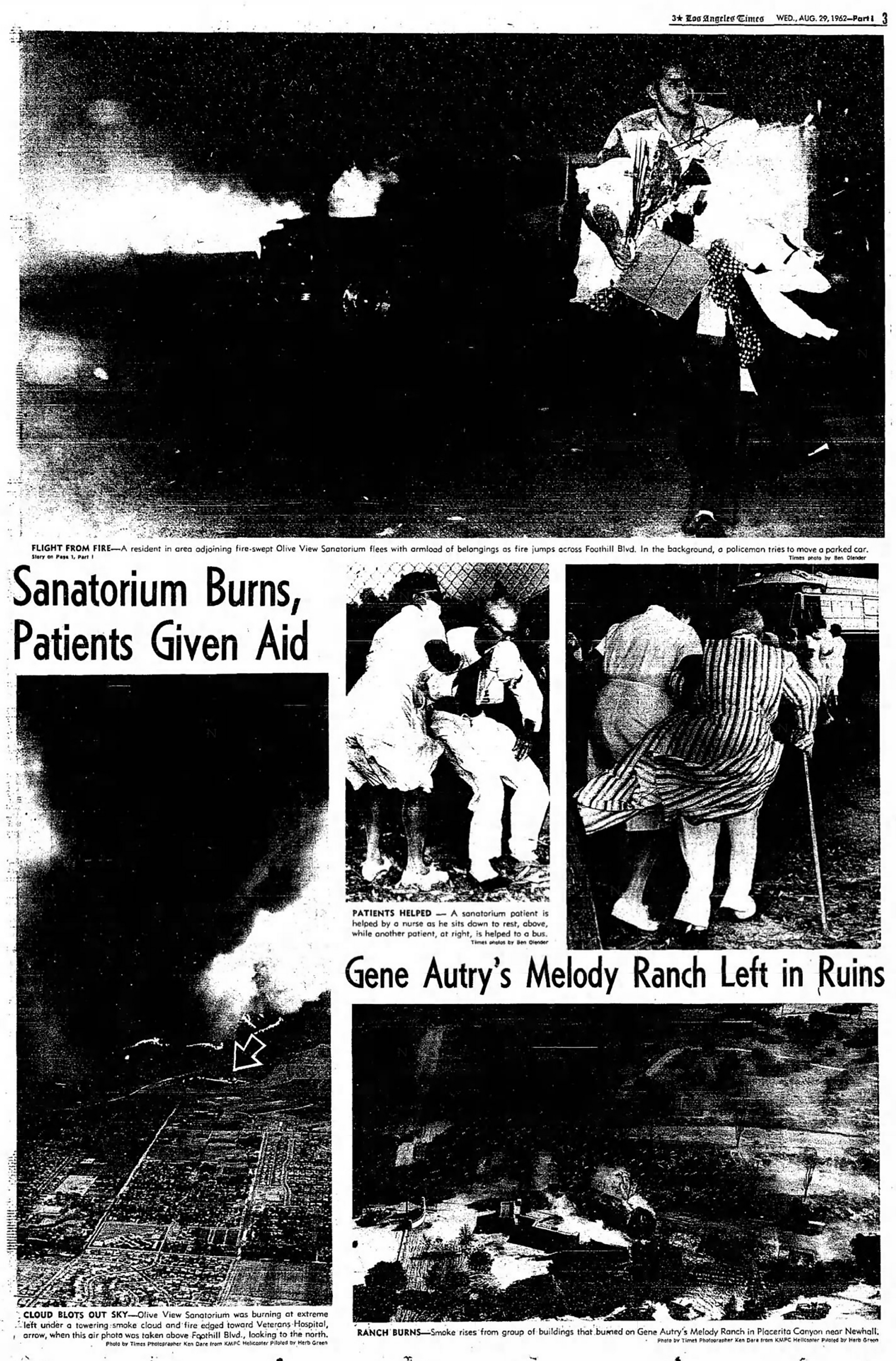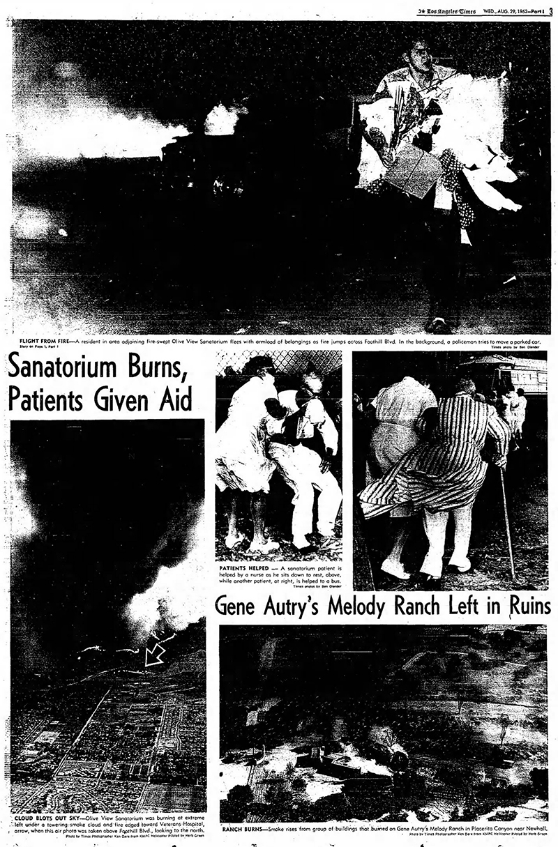 800 TB Patients Flee Fire; Homes, Autry Ranch Razed (AP 8-29-1962)