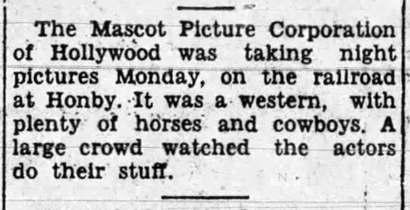from that same year puts a Mascot production crew "with plenty of horses and cowboys" at Honby (which is closer to Saugus than it is to Newhall).