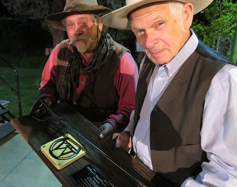 Highlight of the evening was the presentation of branding irons bearing Hart's monogram to eight performers, some of whom have entertained local crowds almost since the beginning of the festival in 1994. The branding irons were fabricated for the occasion by Brian Jones, a blacksmith from Calico, and presented by Mayor Laurene Weste on behalf of the Friends of Hart Park.