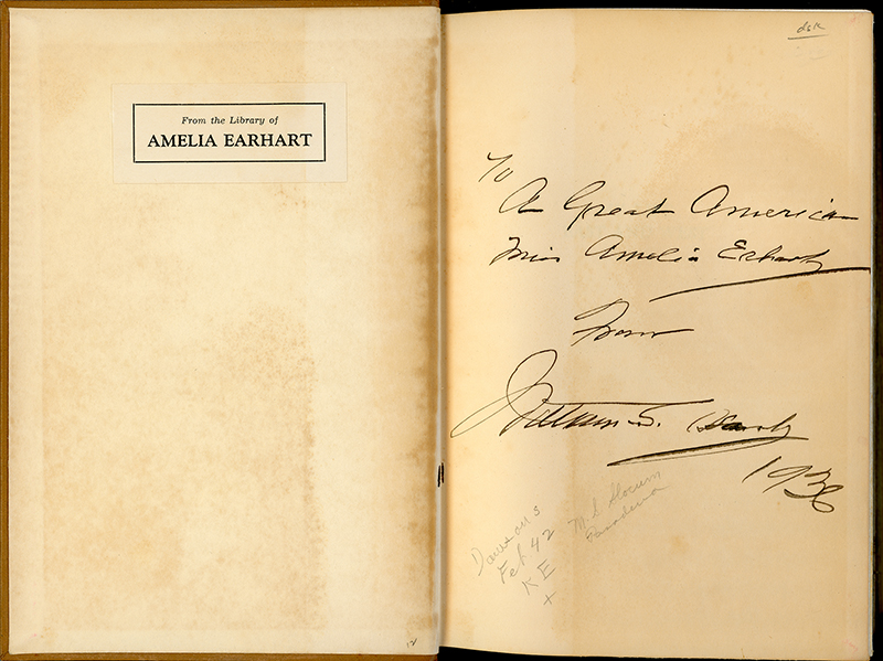 With Earhart's personal bookplate — "From the Library of Amelia Earhart" — showing she actually owned it.