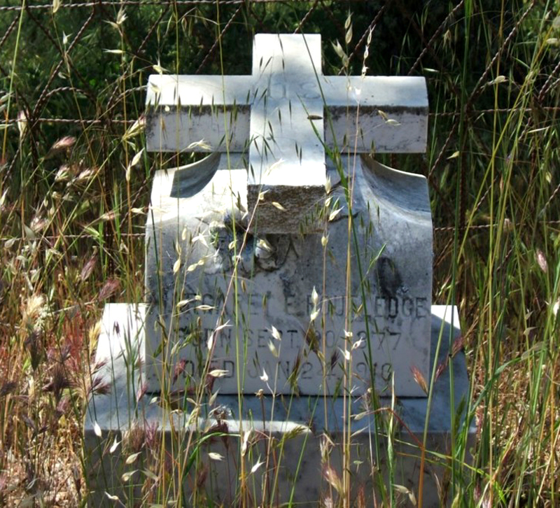 Grave marker at Jolon Cemetery (St. Luke's Episcopal Church Cemetery, Route G14, Jolon Road, Jolon, Monterey Co, Calif.) reads: