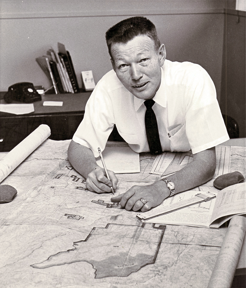 Harry graduated from high school June 16, 1938. Besides the typical teenage preoccupation with girls and all things mechanical, Harry developed a love of airplanes that would dramatically shape his future. He enrolled in flying school and just naturally assumed that his country would use his skills when he joined the Army Air Corps right after Pearl Harbor was bombed. His bubble was burst when halfway through pilot training, the Army began pulling men out randomly to engage in active combat. Harry became an engineer on B-24 bombers, completing 50 missions in Europe before being released stateside. On those missions Harry. learned literally to "act on the fly." One minute he could be top turret gunner, the next he was rushing to patch up enemy fighter and flak damage, and the next, tending to wounded crew members. Staying alive was a big part of every mission. Perhaps nothing can illustrate more clearly the actions of "Our Country's Greatest Generation" than Harry's own reminiscing in a World War II publication: Our bomb group headquarters was in an old winery in Cerignola, Italy where we could watch girls stomp grapes as we were briefed for our missions. We flew our first two missions individually with a seasoned crew. Then we got an old dog of a plane, an olive-drab aircraft. Now the fun began. Up early and down to the Bomb Group headquarters for our briefing as we watched the Italian girls stomp the grapes. I thought about security and wondered if the girls could pass on anything to the enemy. From briefing to breakfast, then to a bin where we kept our sheepskins, our parachutes and our flak suits. And then on to our B-24. Pre-flight, takeoff, form up, and climb to 40 below zero, usually about 23,000 feet. We would level off at the assigned altitude following our lead plane. Now it becomes real fun! Oxygen mask on, icicles on your chin, open gun-port windows, nice 140 mph breeze, throat mike, and COLD! Harry returned from the war with seven battle stars and seven air medals. Of the 1,200 airmen in his 757 Air Squadron, only six hundred made it home. Back on U.S. soil, it was time to put his war experiences behind him. A young woman who caught his eye at a Michigan dance helped him do that when she consented to be his wife several months later. Harry and Barbara Bell were married on Nov. 17, 1945. The young couple set up housekeeping while Harry completed his studies at Central Michigan College, graduating as a civil engineer. According to Harry, his first "real" job was in a six-man engineering department for the Los Angeles Transit Lines. That led to a 15-year job working as an associate civil engineer with the office of the Los Angeles County Engineer. Harry opened the County Engineering Office in Lancaster and sat on the County Planning Commission as an advisor on grading and drainage. Barbara and Harry moved to Lancaster where daughter Janet was born in 1955 and son Ken in 1958. Between business and family obligations, Harry kept his love of flying alive purchasing his own private plane to make annual trips back to his Michigan homestead. Through his association with the Los Angeles Shriners, Harry would also use his plane to fly Third World children suffering from severe injuries and birth defects to Children's Hospital. In the early 60s, another civil engineer applying for a grading permit walked into Harry's office. The two began talking business, but soon found a personal connection that led to a life-long friendship. Ed Bolden, SCV's 1970 Man of the Year, not only became a friend, but a partner as well, in real estate and engineering businesses. Harry and Barbara moved their family to Saugus in 1965 and Harry immediately became involved in a myriad of organizations that helped shape our valley into the thriving community it is today. A few of his contributions to the development of the SCV include being one of five local realtors who founded the SCV Real Estate Board, serving on the formation committee of Henry Mayo Newhall Memorial Hospital, and lobbying to make Castaic Lake a public rather than a private entity.