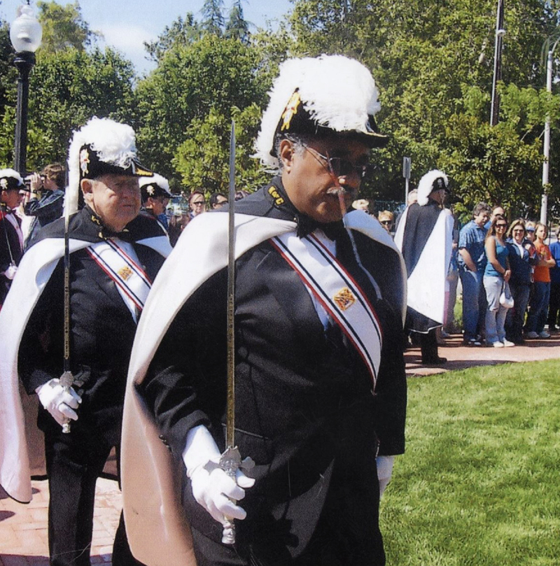 After his honorable discharge, Ray went to work for the Long Beach Naval Shipyard. He then moved on to work at the Naval Public Works Center as a Management Officer, a position that would take Ray and his family to Yokosuka, Japan, for three years. He jumped at this overseas opportunity to somewhat make up for not seeing the world during his active duty in the Navy. Upon completion of his overseas assignment in Japan, Ray returned to the shipyard in Long Beach as a Senior Management Analyst. During his tenure there, he was elected local president of the Naval Civilian Administrators Association. He also served on the Finance Board of the Long Beach Federal Credit Union. Ray's next assignment was as an Administrative Officer for the Armed Forces Radio and Television — the position that led the family to move to Santa Clarita. After a few years, he moved on to serve as Director for Management Support at Lockheed. He then moved to the Lockheed Defense Contract Management Division until his retirement in 1999. Ray was not idle in his retirement. He decided to put his knowledge and skills to use and went to work for the University of Phoenix at Edwards Air Force Base. While there, he learned of the need for a Parish Business Manager at St. Clare of Assisi Catholic Church in Canyon Country. A devout Roman Catholic, Ray jumped at the opportunity to serve his God, his Church, and his community, and took the position. He loved serving his community and continued in this capacity until his death. Another way in which Ray served his community was through his involvement with the Knights of Columbus Council 9740 at St. Clare's. Ray was a life member and held various positions throughout his membership including Grand Knight and District Deputy. Ray, Mary, and the family were the council's "Family of the Year" three times. In 1994, Ray and his family were chosen as the "State of California Knights of Columbus Family of the Year." Ray was also very active in the Fourth Degree, the Patriotic Degree of the order. Ray twice served as the Faithful Navigator. He was the first Navigator of the local Santa Clarita Assembly 2421 which was formed in 1996. For many years, Ray served as a member of the Color Corps, the visible arm of the Knights.