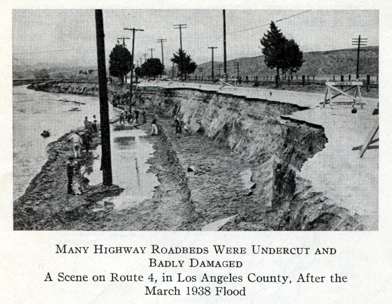 The flood of December 1937, in the Central Valley, and the one of March 1938 in southern California were more severe and destructive than any of the preceding 20 years. The total flood damage over the state during the winter and spring is estimated to be more than $60,000,000; damage to state highways is estimated at approximately $8,000,000, and damage to public service companies, at approximately $16,000,000.