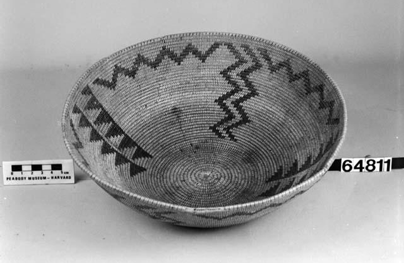 Shallow basketry bowl (dimensions not listed) in the collection of the Peabody Museum of Archaeology and Ethnology at Harvard University, Cambridge, Mass. Peabody Catalog No. 64811.