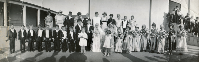 Tom Thumb Wedding at (the fourth) Newhall School, ~1936. 11x3¾-inch glossy print.