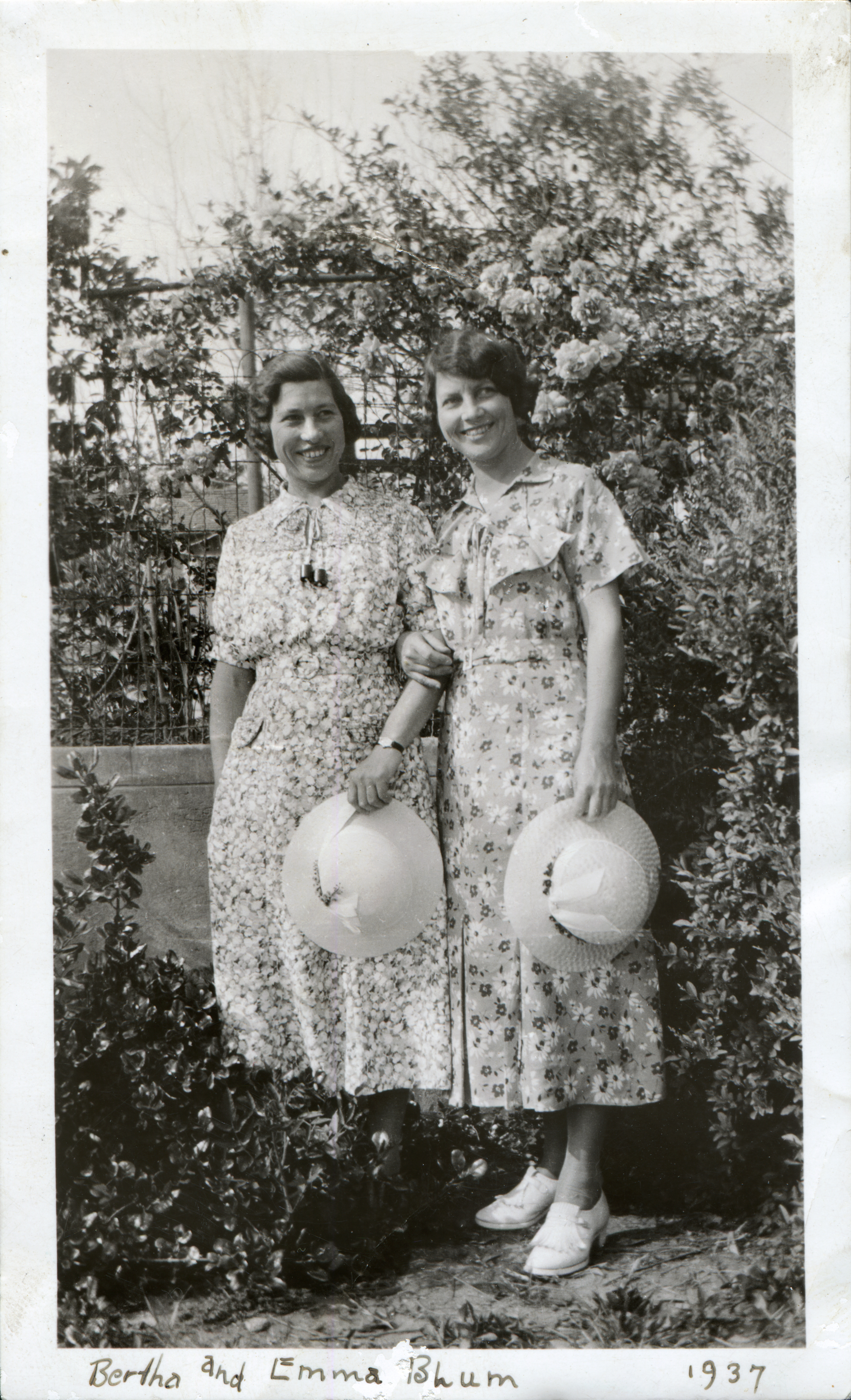"Two Blum sisters. My 3rd and 4th grade teachers. From Switzerland" (which they weren't, but it's possible they spoke German). Photo hand-dated 1937.