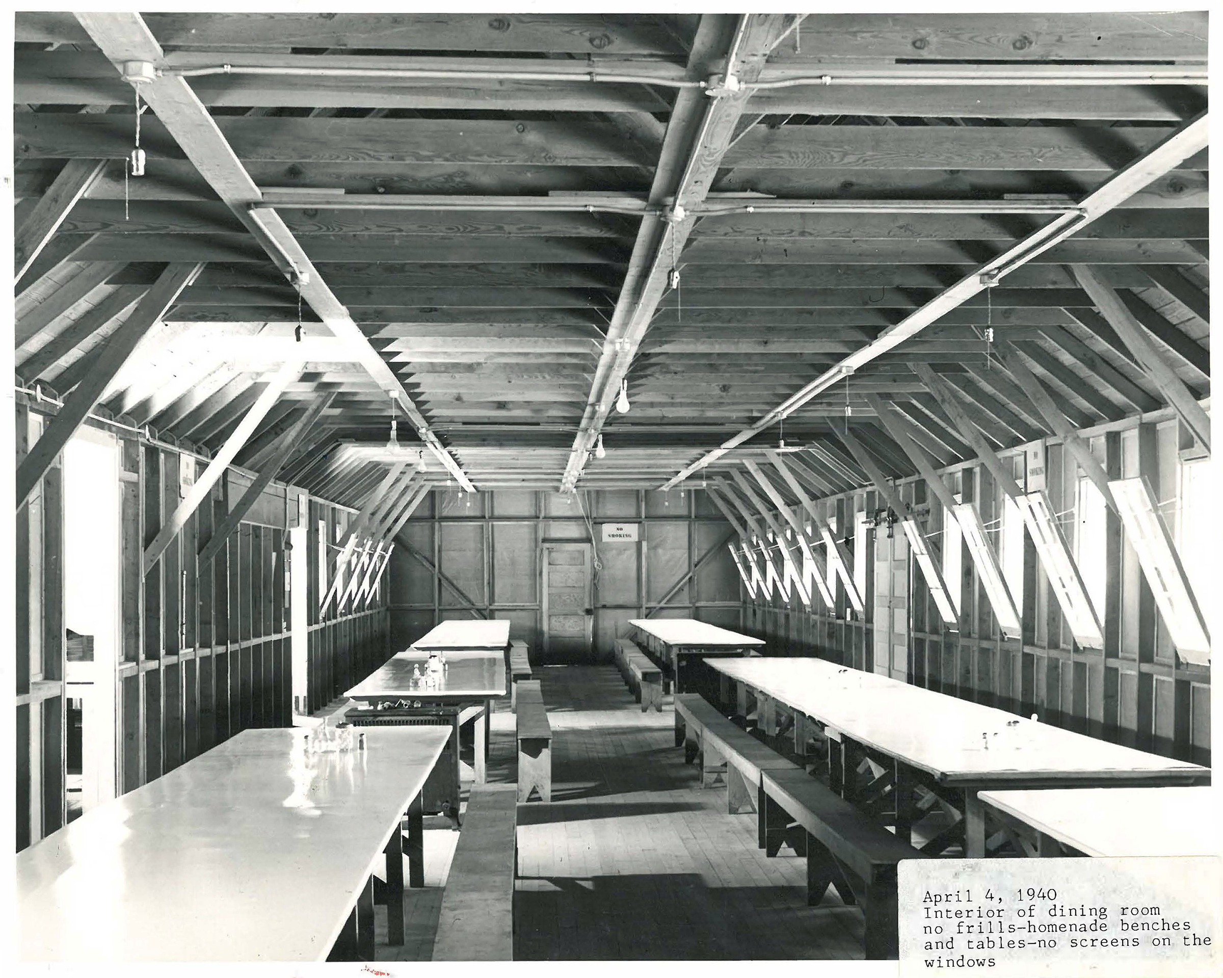April 4, 1940 — Dining room of the fomer CCC Camp at the time of the county's takeover of the facility for use as a sanitarium for tuberculosis sufferers.