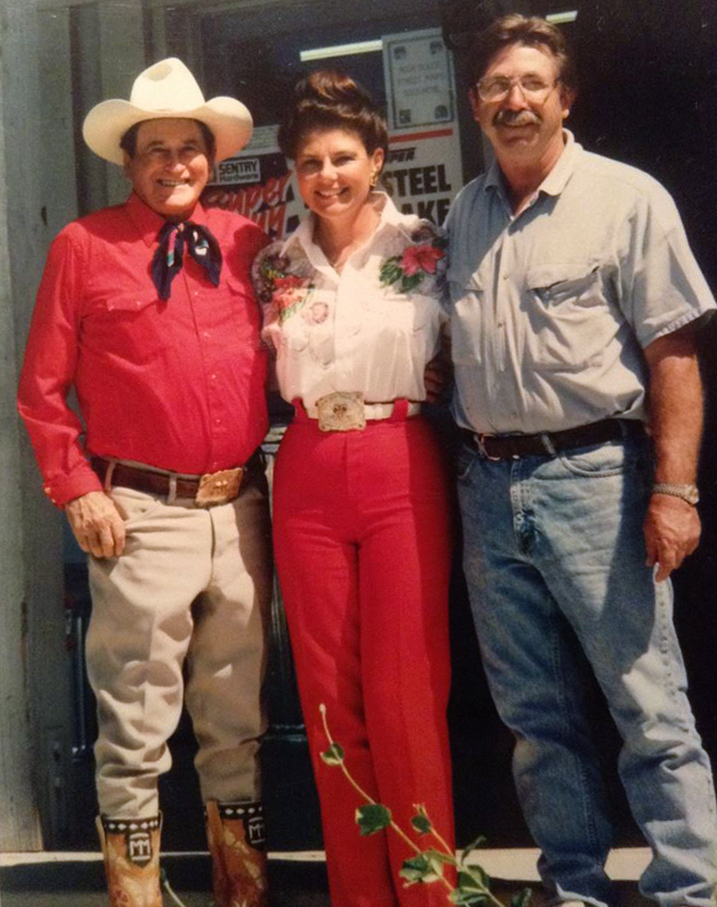 Montie and Marilee Montana with Art Brewer in front of the latter's Agua Dulce Hardware store, mid-1990s. Brewer operated the store since 1992 and died in 2003.