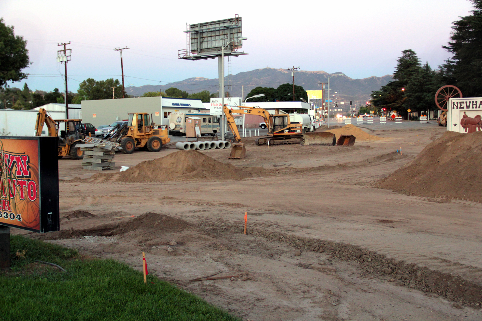 August 15, 2013 — Newhall Roundabout (traffic circle) under construction at the junction of Newhall Avenue, Main Street and 5th Street.