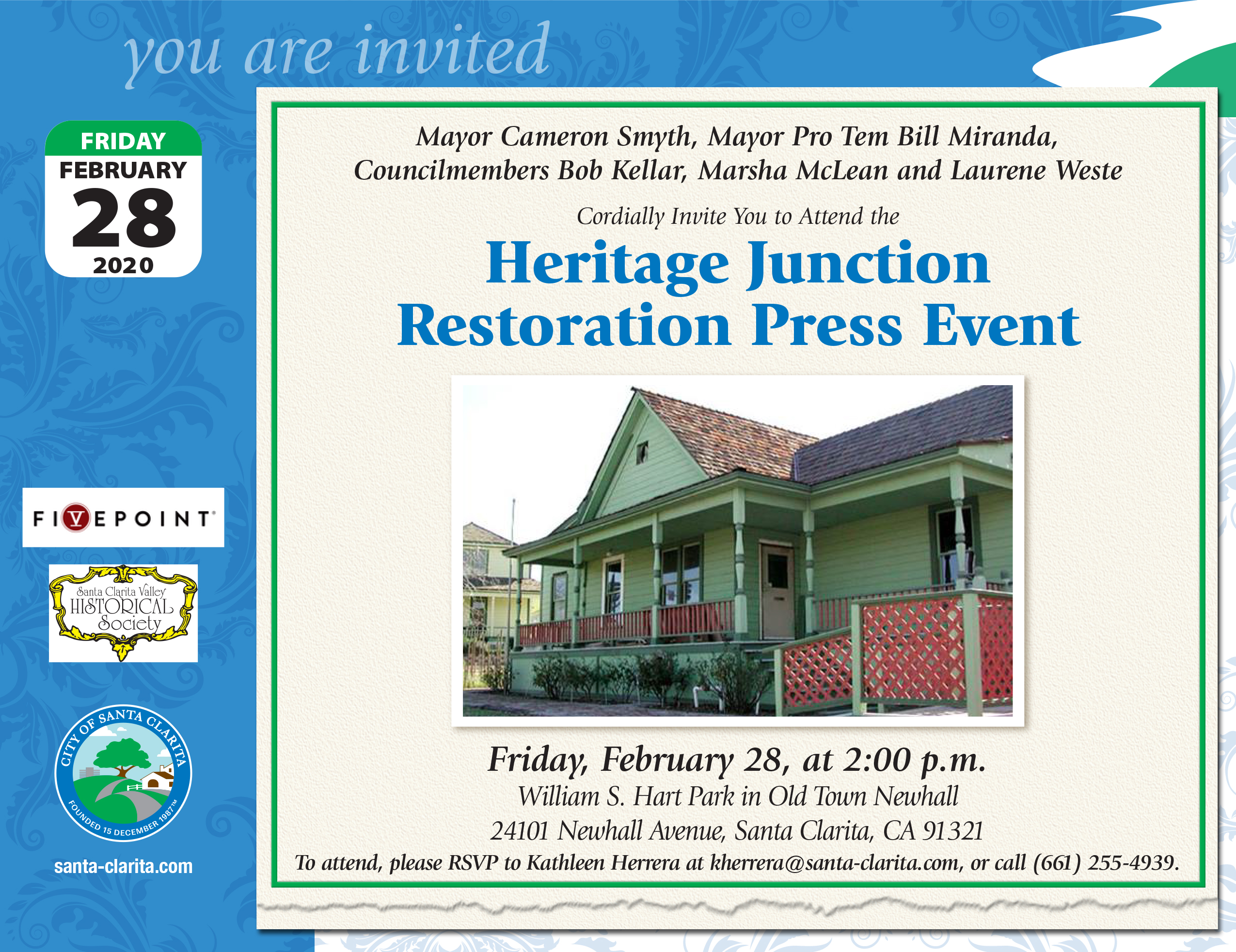 The event included the presentation of a $25,000 check from FivePoint to the Santa Clarita Valley Historical Society, matching the city's contribution to the project.