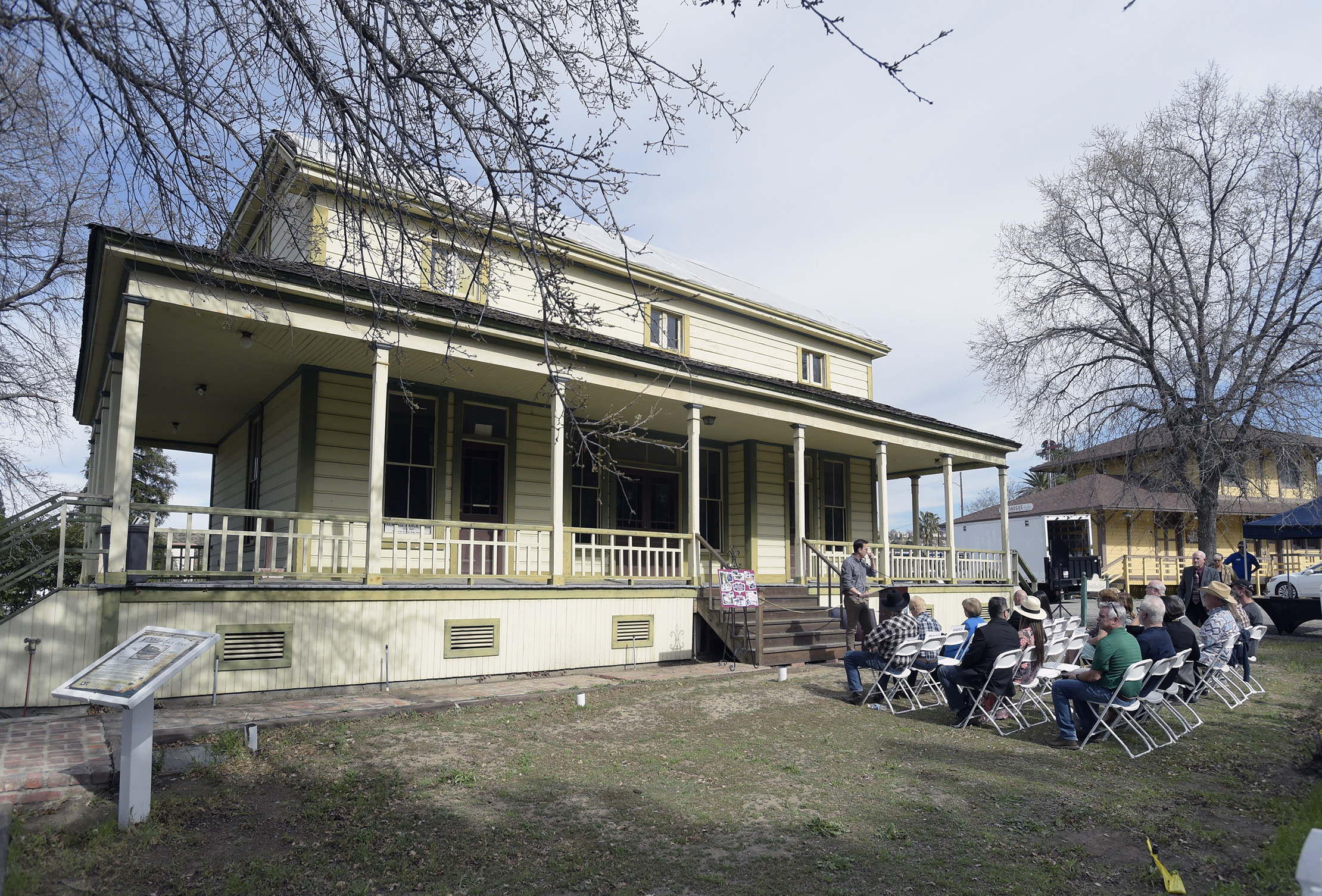 The organizations celebrated with a ceremony using the Newhall Ranch House as their backdrop, a partnership supporting the SCV Historical Society's revamping of the park, which is home to several sites, such as the Saugus Train Station Museum and the Kingsbury House.