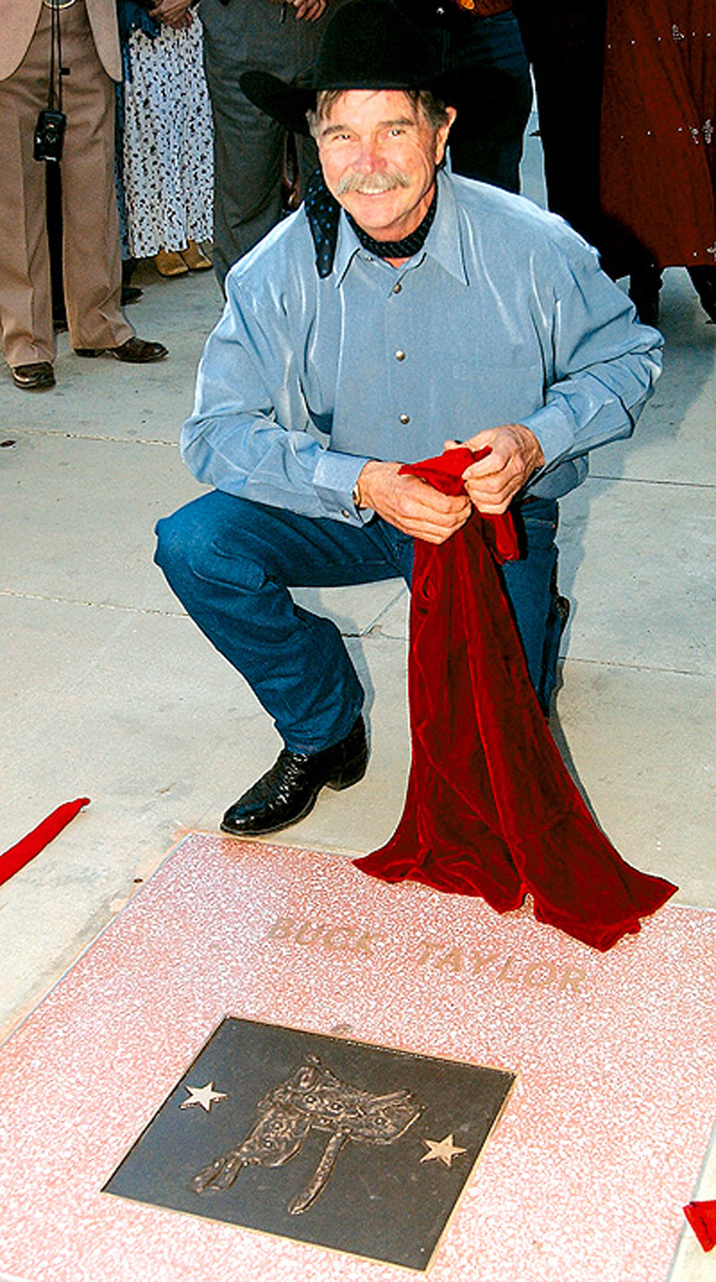 Actor Buck Taylor pulls the wraps off of his plaque in Old Town Newhall.