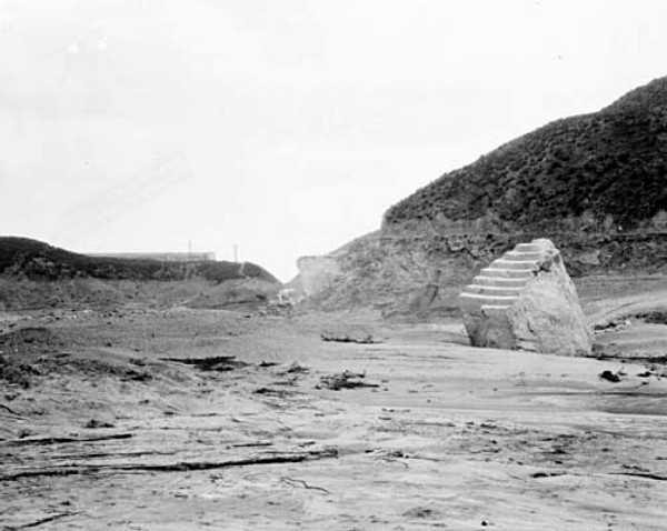 The force of the water forced this large concrete block downriver during the St. Francis Dam disaster of March 12-13, 1928. | ||