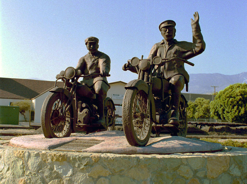 Statue honoring officers Thornton Edwards and Stanley Baker, whose warning saved lives in Santa Paula.