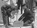 This approx. 60-second version was shown on screens in Great Britain. It was released into the public domain by British Pathe in 2014. Filmed by Steene, it shows the tombstone, as well as receding floodwaters apparently just below the dam, and the empty (emptying) reservoir behind the dam.