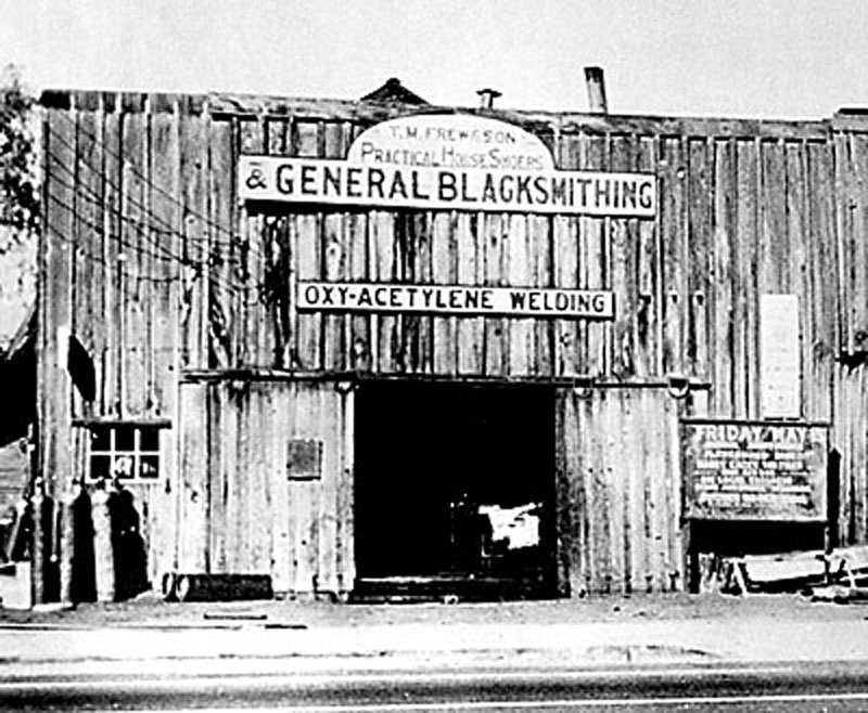 T.M. Frew & Son Practical Horseshoers & General Blacksmithing. The current (2013) address is 24313 Main Street, Newhall.