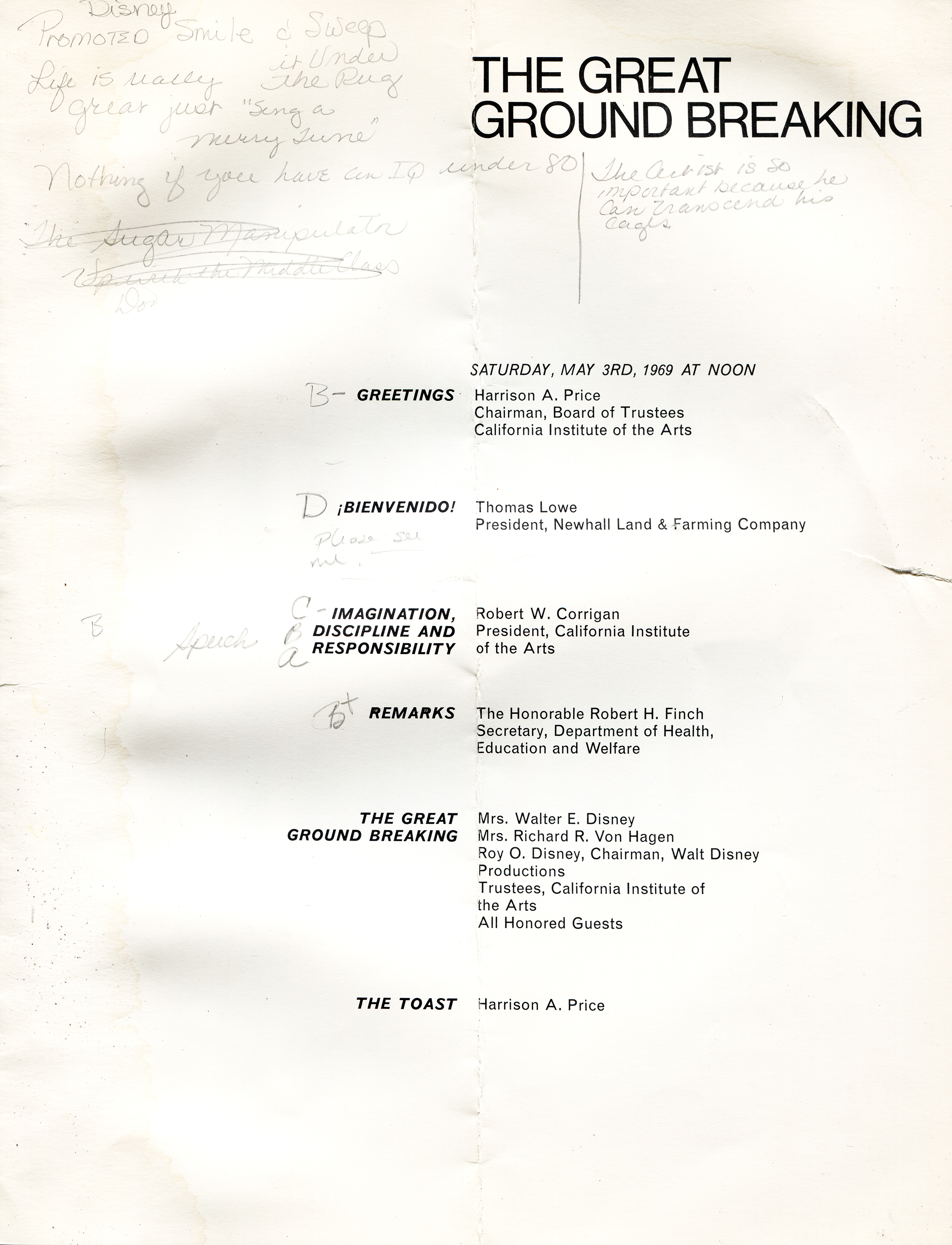 Program to The Great Ground Breaking, California Institute of the Arts, May 3, 1969.
