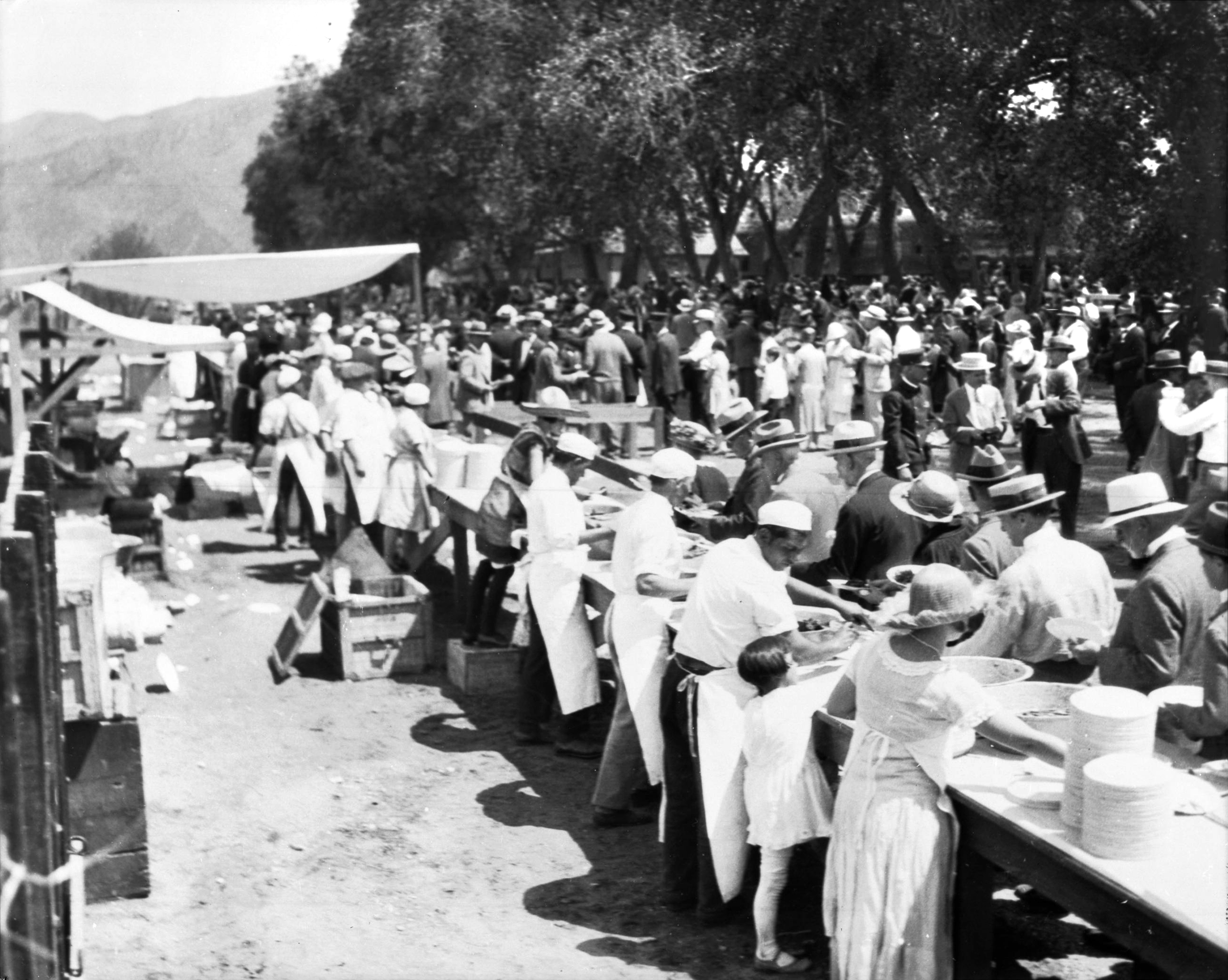 Sept. 5, 1926 — Refreshments are served at the 50th anniversary reenactment of the "wedding of the rails" at Lang.